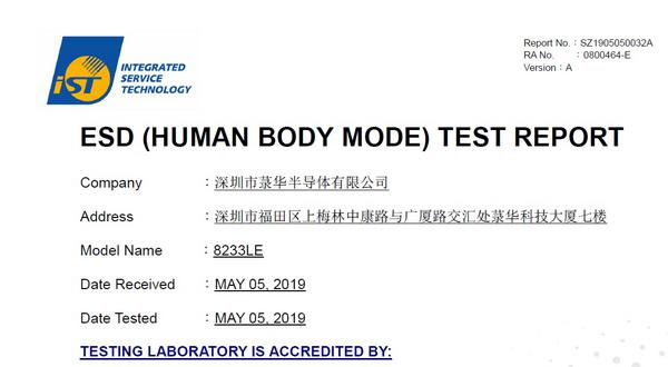 電容式單按鍵觸摸檢測(cè)IC CT8223LE通過(guò)ESD測(cè)試