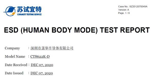 電容式觸摸IC CT8622K-D通過(guò)ESD測(cè)試
