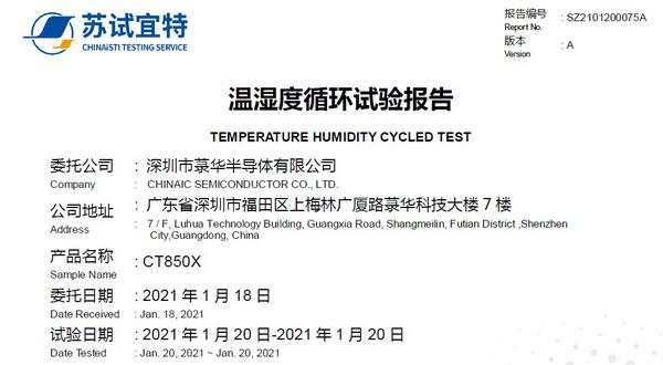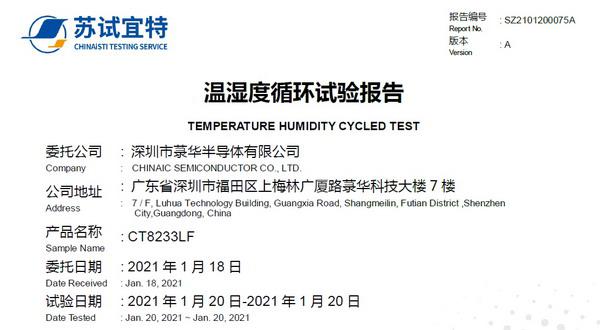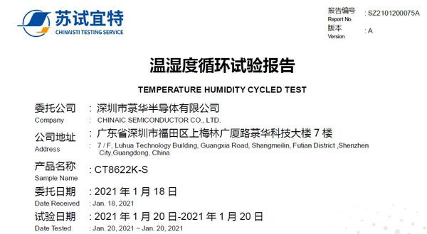 電容式單按鍵觸摸檢測(cè)IC CT8323Q通過(guò)溫濕度循環(huán)試驗(yàn)